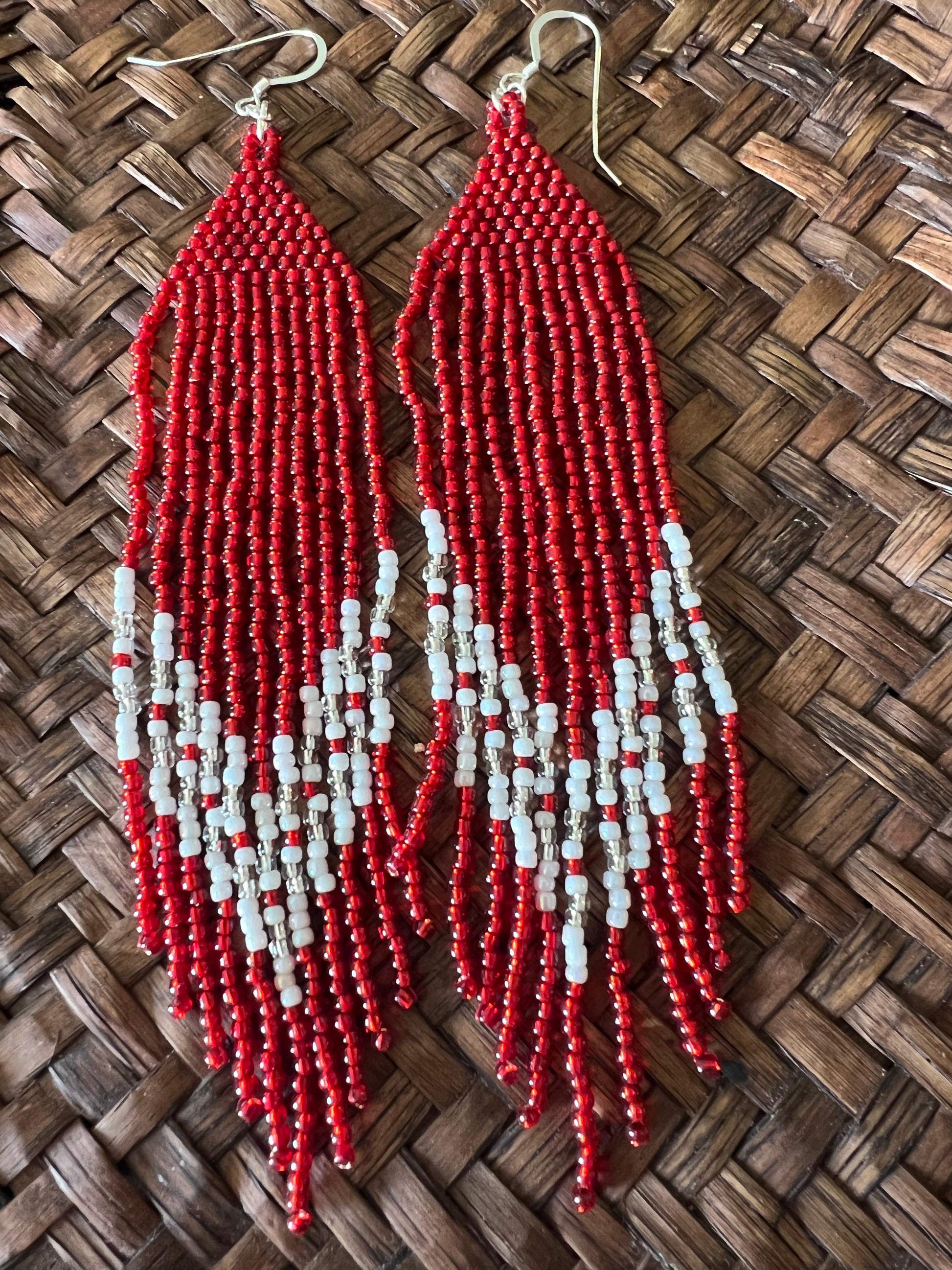 This fringe earring measures 5 1/2 inches long from the hook to bottom of the earring and 3/4 inch wide.