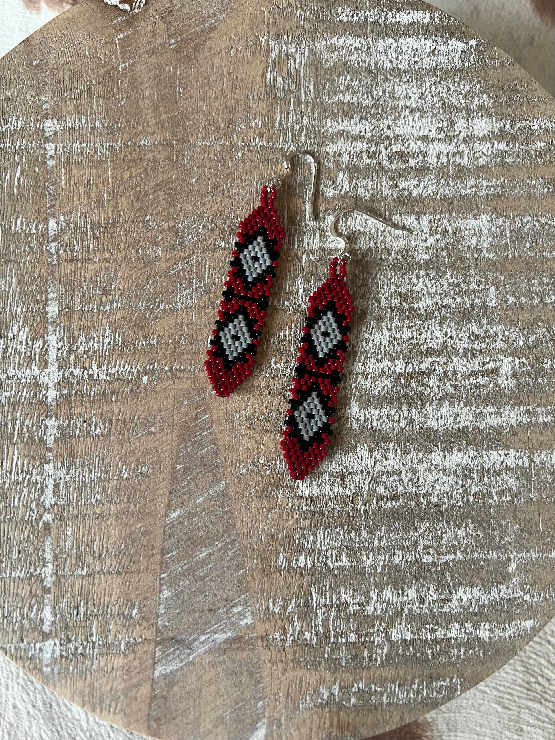 The Mojave Mini design is a mini sized beaded flat perfect for day wear or a simple accessory. The vibrant deep red, black and gray is stunning.