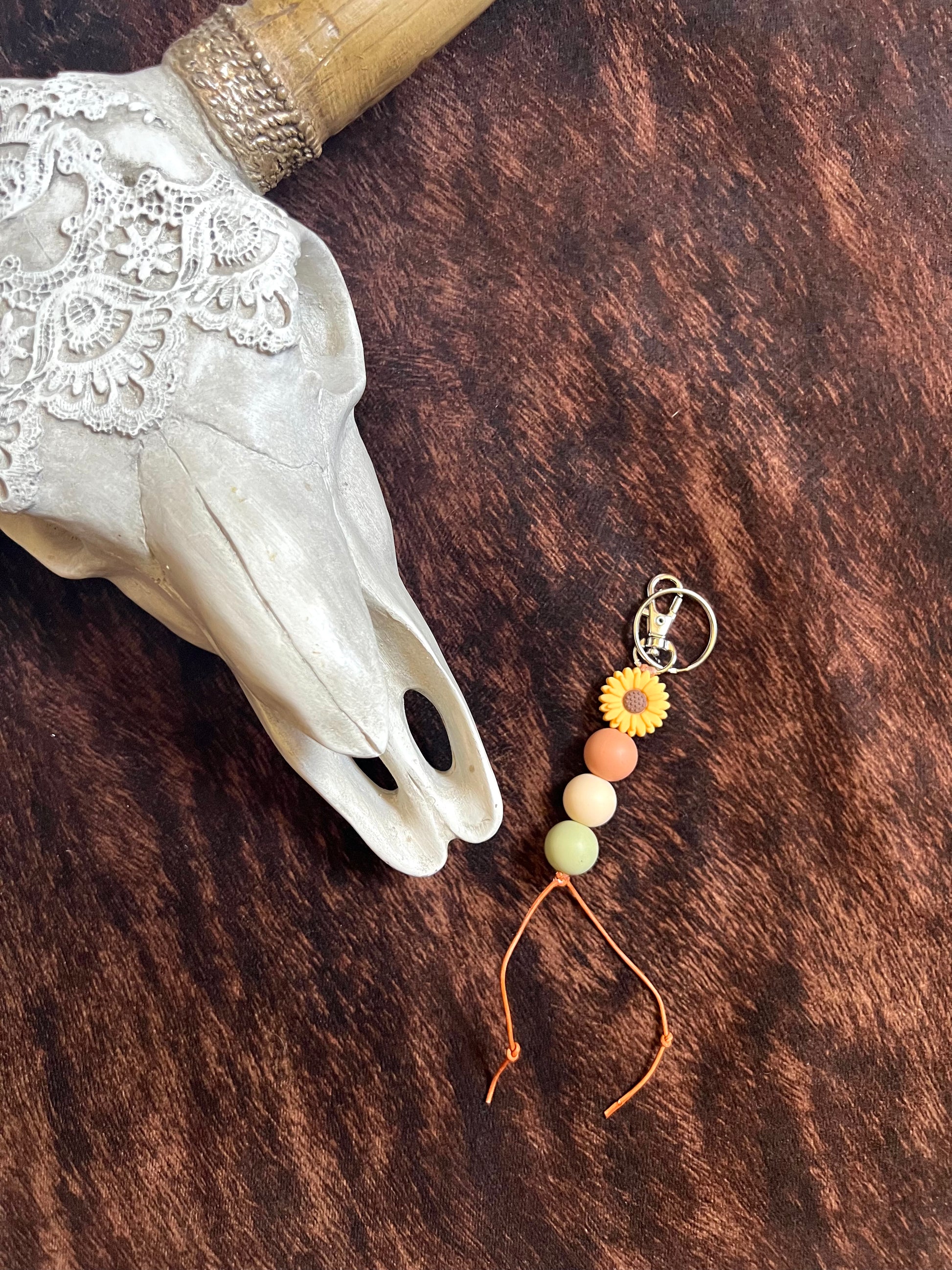 Soft pastels with a sunflower topper key chain.